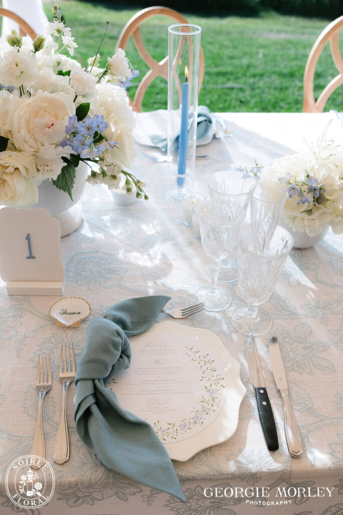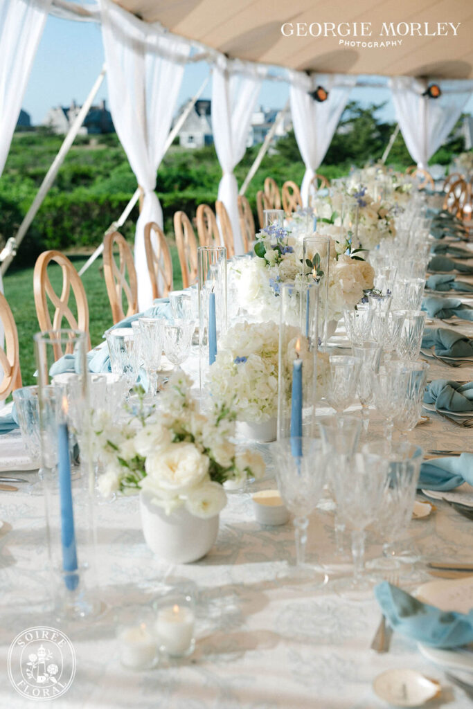 Soft ocean breezes, sparkling water views, and the dreamiest palette of white and blue—this wedding was the perfect blend of classic Nantucket style and laid-back luxury. From the moment we stepped into the tent, with sunlight pouring in and the gentle rustle of draped fabric, we knew this day was going to be something special.